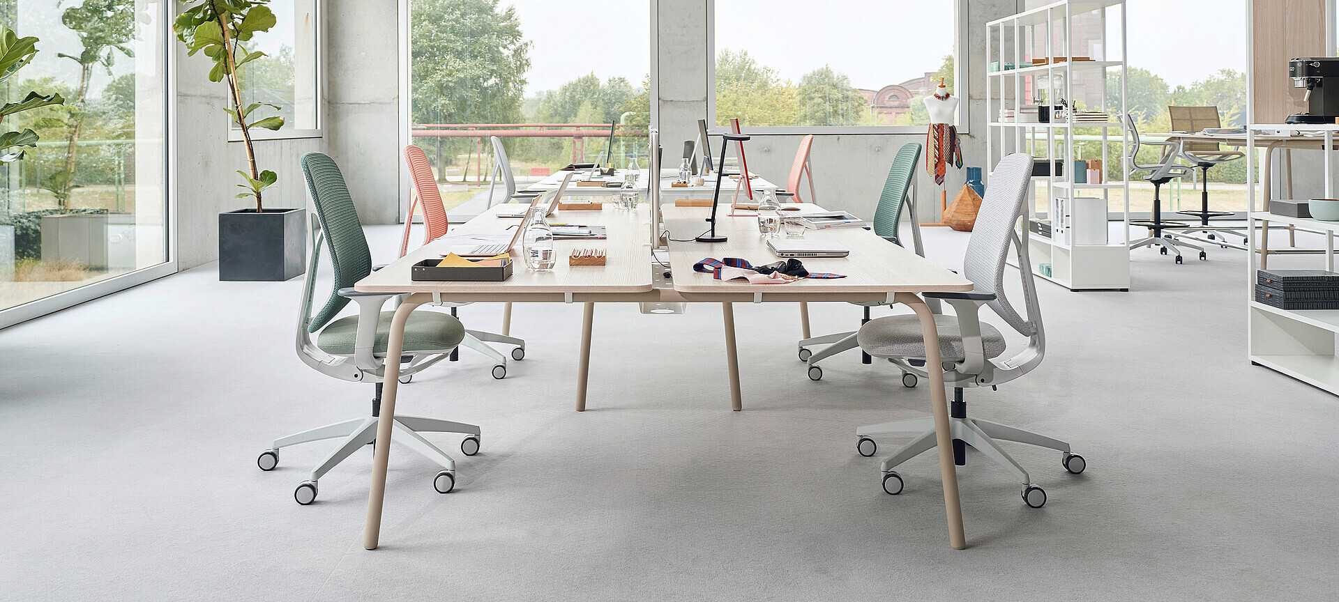 Ein harmonisches Umfeld trägt entscheidend zum Wohlbefinden und zur Produktivität bei. Eine durchdachte Einrichtung, angenehme Material- und Stoffkombinationen sowie die Wahl der Farbakzente ergänzen das Gesamtbild optimal. Mit den vier Farbwelten Smart Balance, Urban Living, Soft Being und Multi Creation können Arbeitsumgebungen und passend dazu auch se:kit gestaltet werden.