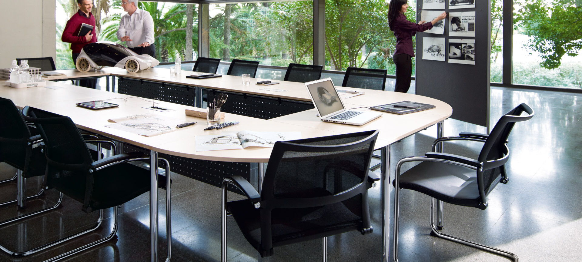 Sedus talk about ist ein klassisches Seminar-/Konferenztischsystem mit modernem reduziertem Design. Die einfachste Beschreibung eines Tisches: „Eine Platte mit vier Beinen”. Diese Einfachheit, verbunden mit größtmöglicher Leichtigkeit, führen zu einer klaren, eleganten Erscheinung. Besonders bei komplexen Tischkonfigurationen kommt diese positiv zum Tragen. Die Klarheit der Gestaltung beinhaltet jedoch gleichzeitig eine Funktionalität, die die komplexen Anforderungen an ein modernes Seminar-/Konferenztischsystem bedingungslos erfüllt.