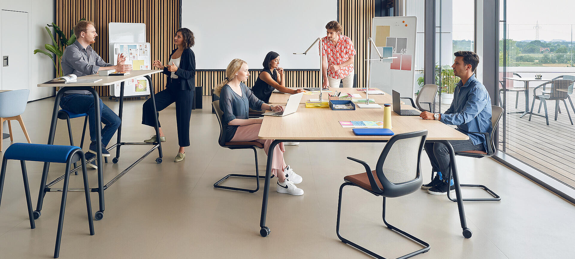 Der Besprechungstisch se:lab meet desk verspricht einfaches und flexibles Arbeiten. Im modernen Design ist der Vierfuß-Tisch nahezu überall einsetzbar und kann durch die optionale Ausstattung mit Rollen frei im Raum bewegt werden.
