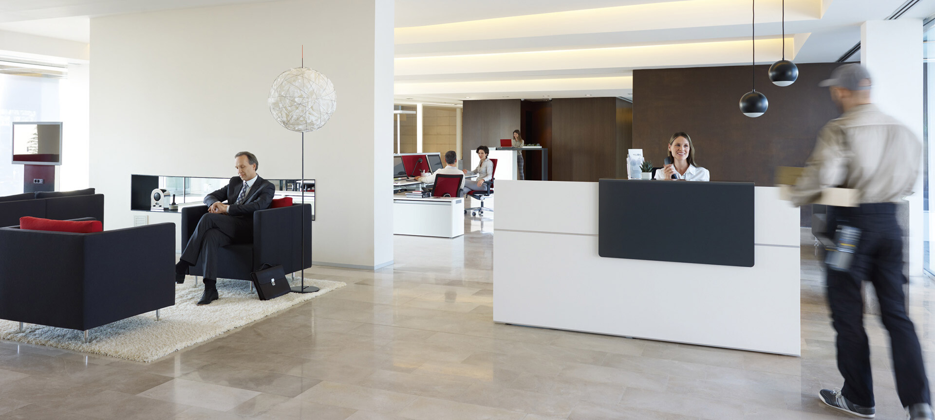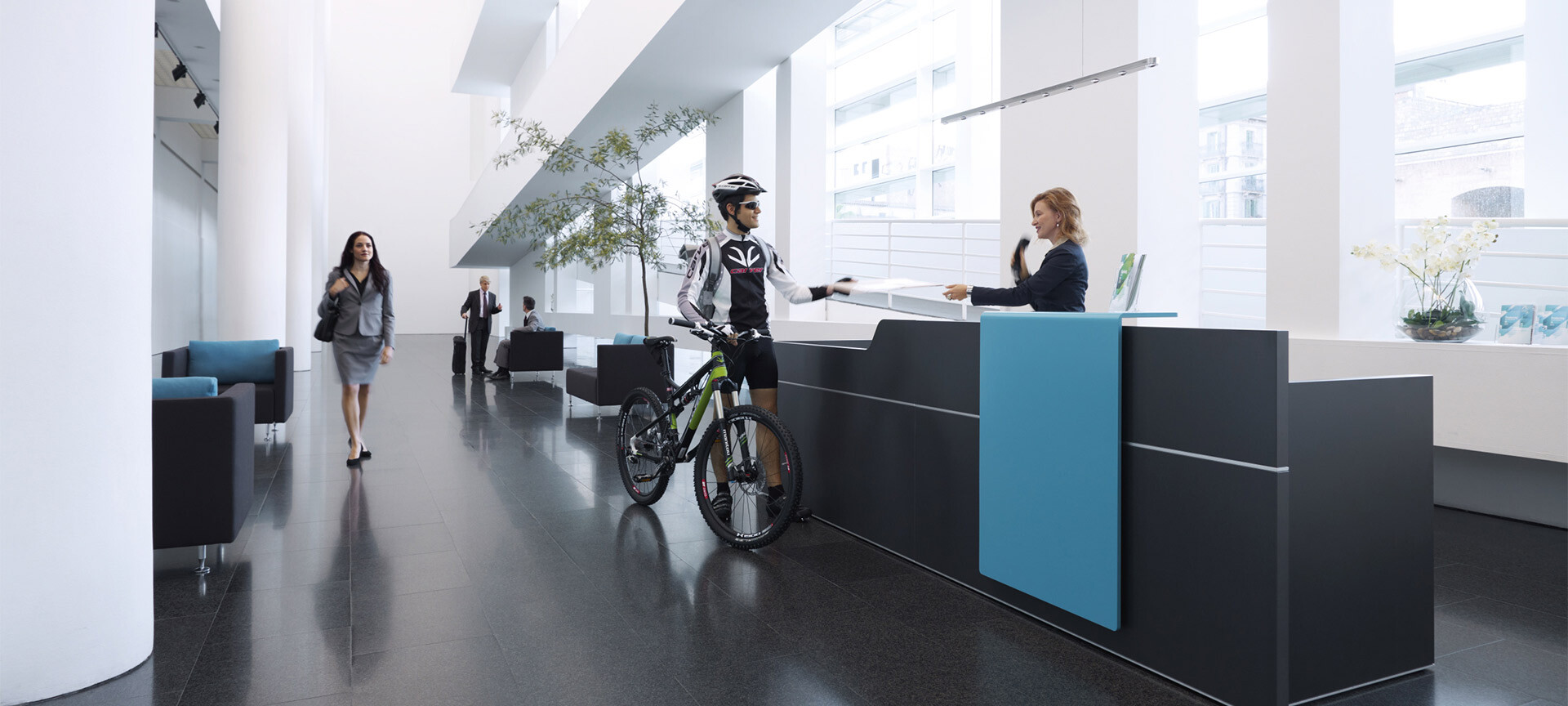 Im Firmenfoyer oder Showroom, in Büros mit Kundenkontakt, als Anlaufpunkt im Open Space oder als Counter in Praxis und Kanzlei spielt die Empfangstheke eine Hauptrolle. Sie heißt Besucher willkommen und repräsentiert die Unternehmenskultur, ist aber zugleich auch Arbeitsplatz mit ergonomischen Anforderungen. Das Empfangsthekenprogramm von Sedus bietet beste Voraussetzungen für die perfekte Erfüllung dieser Doppelfunktion.