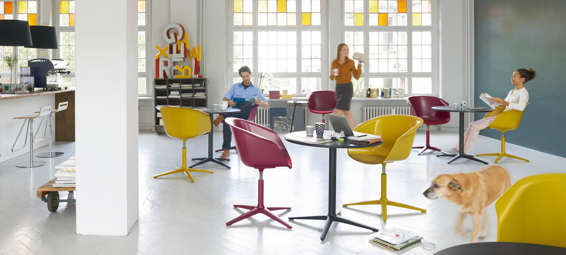 Die besten Ideen entstehen oft dort, wo Menschen zusammenkommen und sich wohlfühlen. Mit Sedus on spot schaffen Sie die richtige Atmosphäre dafür: Sein einladendes, wohnliches Design verbindet den entspannten Charakter einer Lounge mit produktiver Sitzergonomie. Ein Konzept, das die Dialogkultur fördert. Denn immer wichtiger werden heute Teambereiche, Co-Working-Areas und Rückzugsplätze – also genau jene Orte in der Mittelzone, für die on spot entwickelt wurde.