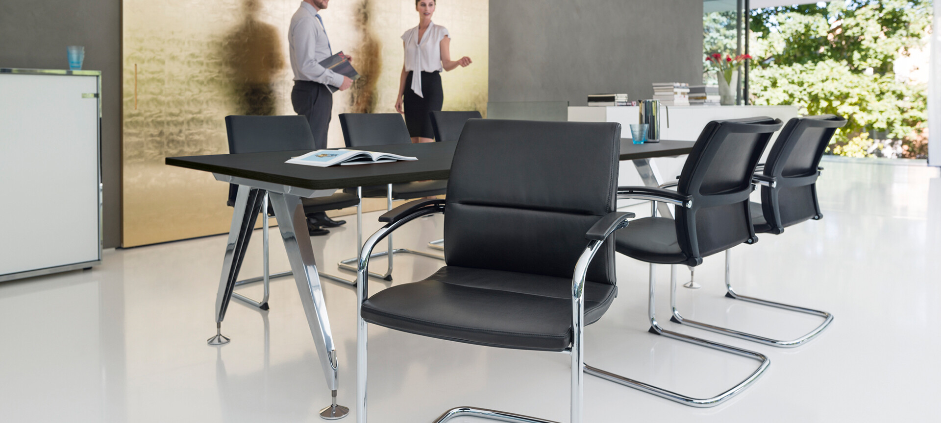 Die Konferenz- und Besucherstühle der open up Familie vermitteln Gästen und Gesprächspartnern vom ersten Moment an, dass sie willkommen sind. Durchdachte Ausstattungsoptionen ermöglichen dabei eine Anpassung an persönliche Wünsche, zum Beispiel mit einem flexiblen Membranrücken oder einem angenehmen Flachpolster. Während der bequeme Drehstuhl besonders repräsentativ empfängt, punktet der elegante Freischwinger mit einem außergewöhnlichen Sitzkomfort. Bei beiden Entwürfen ist eines gewiss: Die Basis für das persönliche Gespräch stimmt.