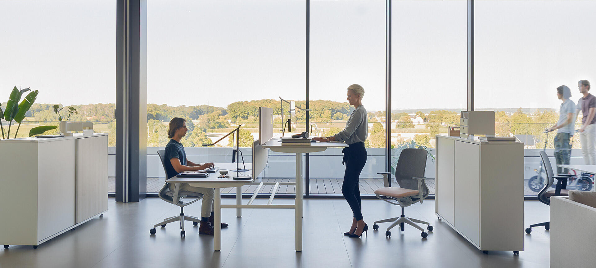 Ein harmonisches Arbeitsumfeld trägt entscheidend zum Wohlbefinden und zur Produktivität bei. Eine durchdachte Einrichtung, angenehme Stoff- und Material-kombinationen sowie die Wahl der Farbakzente tragen wesentlich dazu bei. Egal, ob Smart Balance, Soft Being, Urban Living oder Multi Creation – für jede dieser Farbwelten lässt sich se:motion net passend modifizieren.