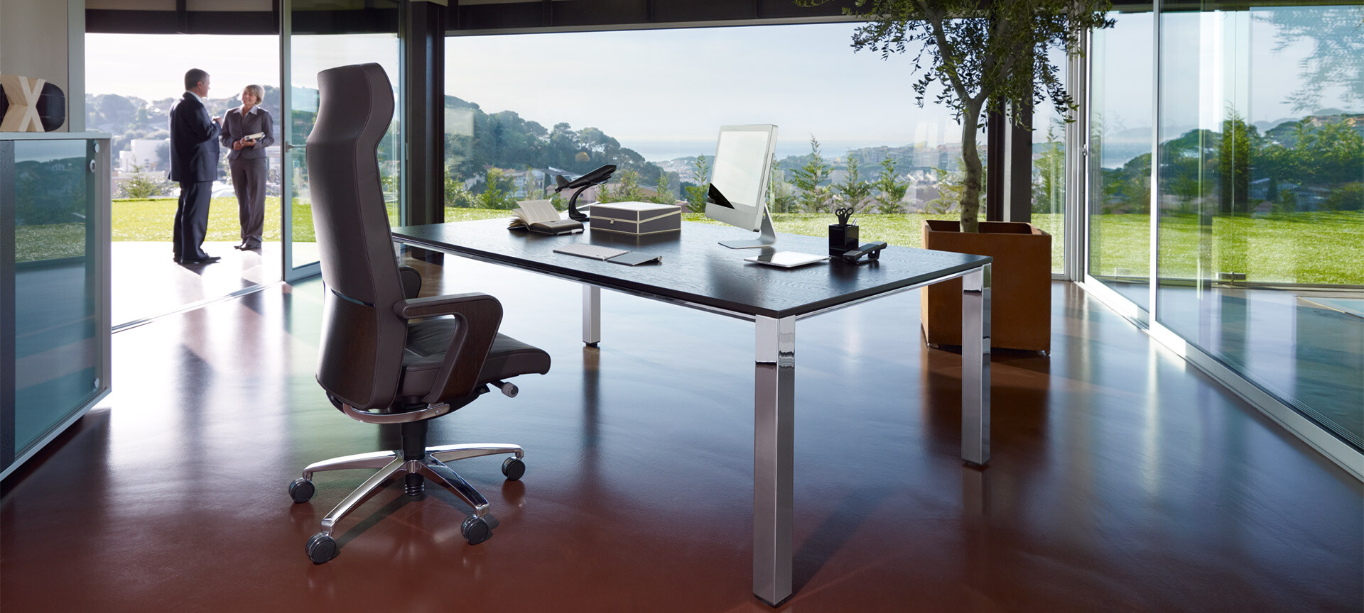 Als hochwertige Ergänzung der temptation Produktfamilie sind die temptation prime Arbeitstische prädestiniert für die Führungsetage. Nicht zuletzt dank der großzügigen Plattenformate lassen sich auch weitläufige Räume eindrucksvoll gestalten. Für den feinen Unterschied sorgt dabei die verchromte Version des temptation prime. Rein optisch ist diese exklusive Variante auch an den quadratischen Fußelementen zu erkennen, die mit einem Querschnitt von 70 x 70 mm äußerst repräsentativ wirken.