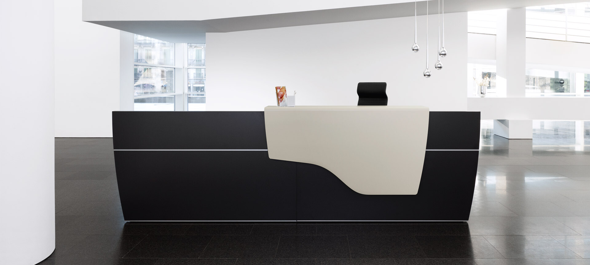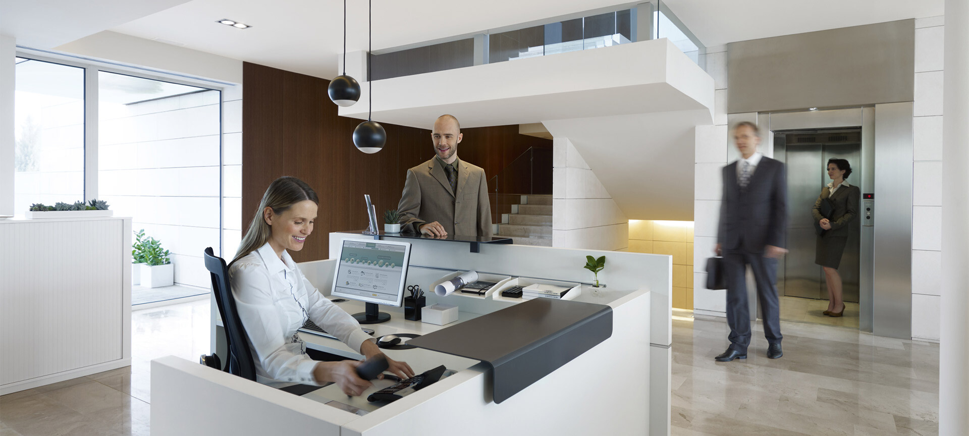 Im Firmenfoyer oder Showroom, in Büros mit Kundenkontakt, als Anlaufpunkt im Open Space oder als Counter in Praxis und Kanzlei spielt die Empfangstheke eine Hauptrolle. Sie heißt Besucher willkommen und repräsentiert die Unternehmenskultur, ist aber zugleich auch Arbeitsplatz mit ergonomischen Anforderungen. Das Empfangsthekenprogramm von Sedus bietet beste Voraussetzungen für die perfekte Erfüllung dieser Doppelfunktion.