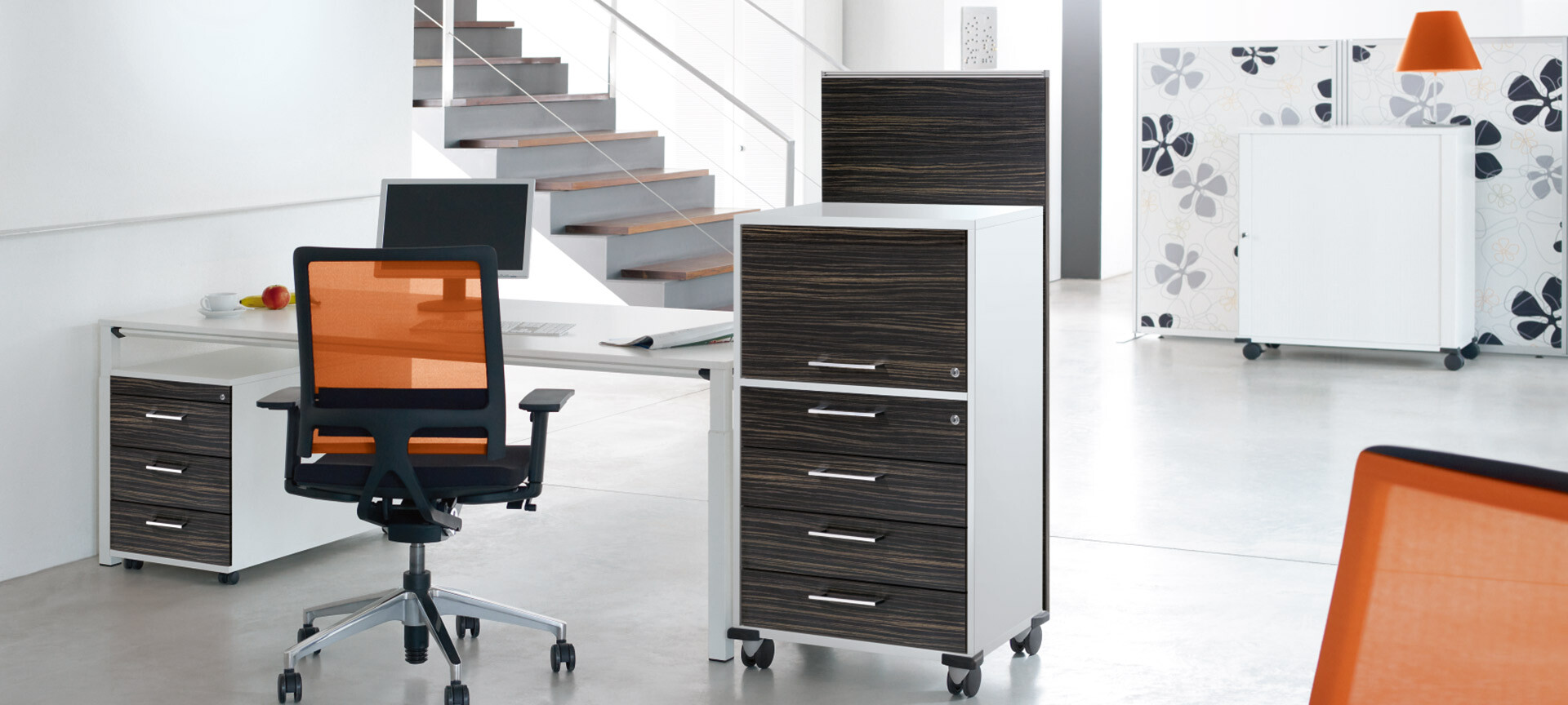 Mobilität ist heute nicht nur im Berufsleben gefragt, sondern auch direkt im Büro. Moderne Arbeitsmöbel wie die Mobilcontainer von Sedus wurden genau dafür entwickelt. Überall dort, wo non-territorial an wechselnden Orten gearbeitet wird, dienen sie als Stauraum, Kommunikationseinheit oder Steharbeitsplatz zum Mitnehmen. Selbstverständlich können sie nach individuellen Wünschen und Anforderungen ausgerüstet werden, zum Beispiel mit einem Kleiderhaken oder einem Briefschlitz.
